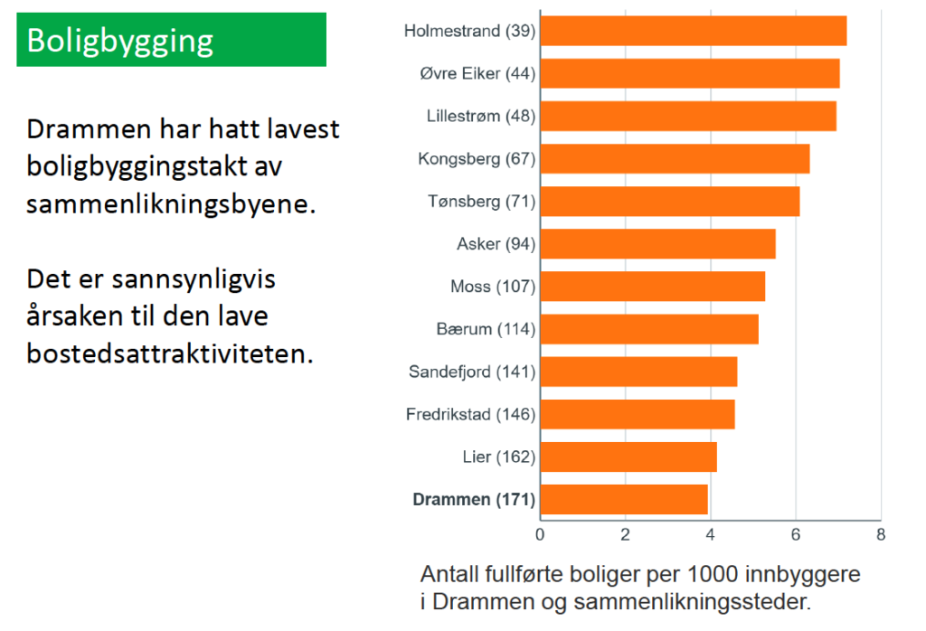En av utfordringene til Drammen er at det ikke bygges nok boliger.