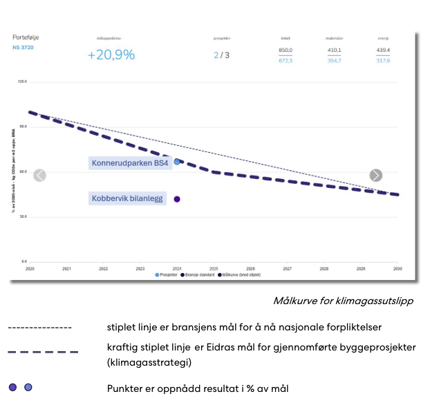 – For to av prosjektene i porteføljen vår, Konnerudparken trinn 1 og bilanlegget på Kobbervik Næringspark, vises en samlet måloppnåelse som er 20,9 prosent bedre enn kravet vi har satt på klimagassutslipp, sier Bjørn.