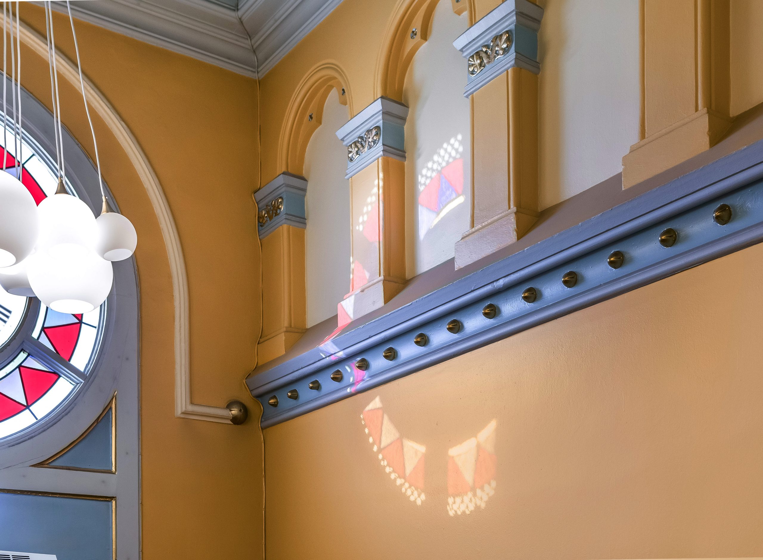 Innvendig er det pusset opp i tråd med de retningslinjene man har når et bygg er fredet, slik at det i dag kan brukes som kontorbygg.